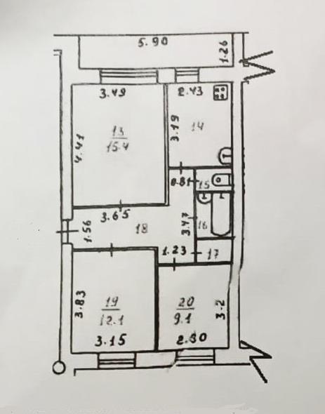 * Что имеем по квартире: 3-тий этаж в пятиэтажке 1977-го года постройки, не угловая, санузел раздельный, есть удобная кладовочка, за счет которой можно увеличить санузел. Площадь - 58.2 кв.м. + огромная семиметровая лоджия с выходом из зала. Помещения все формой близки к квадрату, несущих стен внутри квартиры нет, окна/проводка/коммуникации - родные, делать всё - ОТ и ДО.