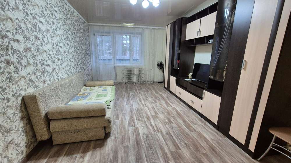 33 кв.м, 2 этаж, не угловая, балкон застеклен, пласт.окна во всей квартире, пол стяжка, комната 18 кв.м, Квартира частично меблирована, техника есть, В шаговой доступности, остановки, магазины, школа, дет.сады. Сдам на длительный срок.